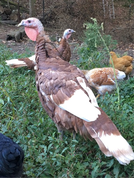 Non pumpkin related. This is my Bourbon Red Turkey. His name is Butterball. His girlfriend Honeysuckle is right behind him as well as a couple of our chickens. No we do not plan on eating them. They are our pets.