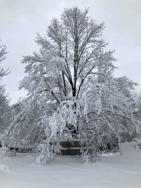 Maple tree...never seen one bend like that...lots of tree branches down...more snow on the way...
