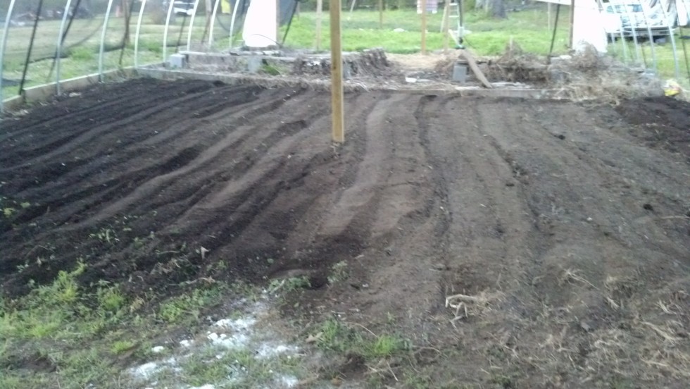 Got the half the greenhouse that matters tilled, still have not even cleared where watermelons were last year