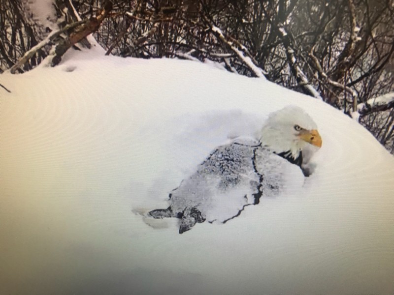 The snow kept coming and Liberty stayed on the eggs.