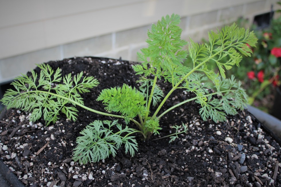 Carrot at 55 days. I don't know, 1/2"? 3/4"? Like seeing new leaves grow out of it. I wish there was such a thing as see through soil. It's going to take everything I have to not dig down and see how big it is through out the season.