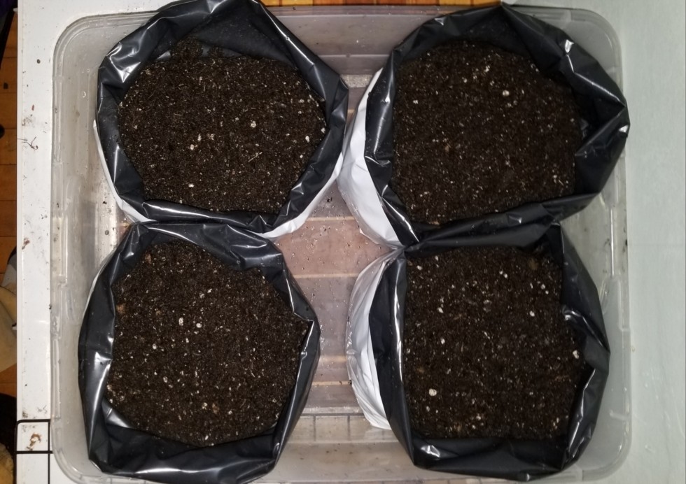 2 gallon grow bags ready for action as soon as roots pop (hopefully in the next 36 to 48 hours)...