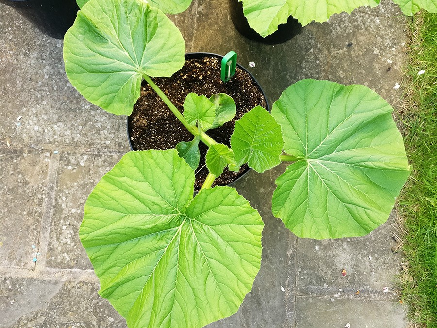 Pick of the bunch so far is this Paton 1949 with the big leaves, just over 2 weeks since germination. The weather is hot and sunny so the plants are outside taking full advantage. They are all still in 10l pots and are now showing signs of wanting to lay down; they must go in the ground this week or they'll start getting a bit tricky to handle.