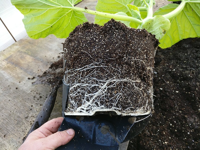 I wish I could have got this plant into the ground last week, as you can see it's almost potbound. All the same, it's good to see a good healthy root system. The polytunnel isn't finished yet but I just have to get these plants out of their pots before it's too late. Decent weather is forecast for this week, the builders will just have to be careful where they stand!