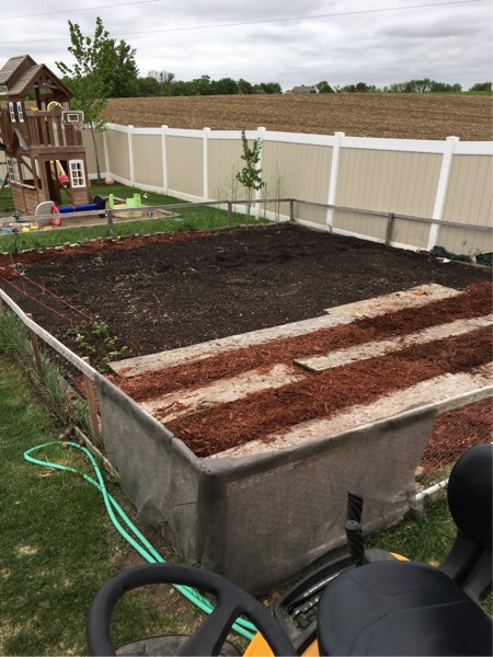 Almost ready for maters to go in - I spend a little extra time up front putting down weed fabric and mulch so I don�t have to weed the maters all year - I will be throwing a field pumpkin in the middle