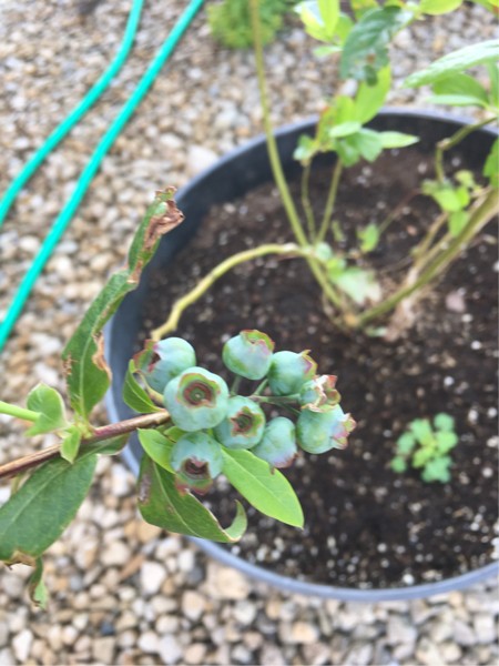 Trying blueberries this year - I�ve got 7 lol wheeeeeee - everyone in the family gets one berry - ohhh I hope they are good