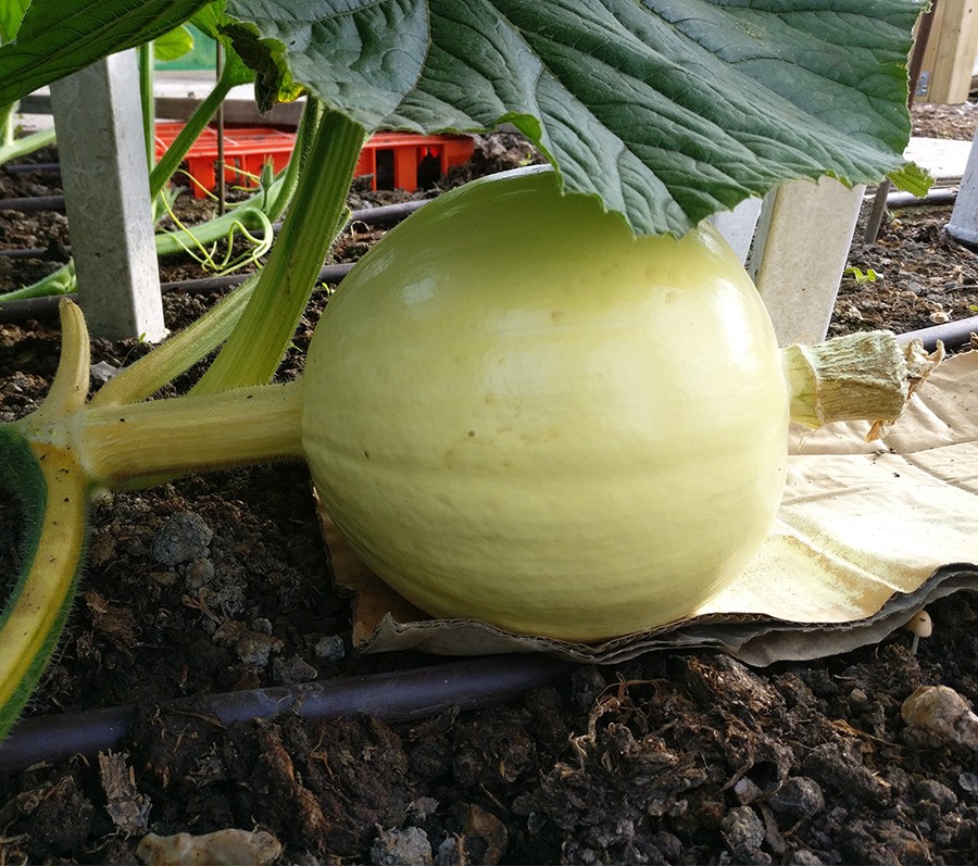 DAP 10 with good shape and position and long stem. Also a large female flower on a strong vine coming from the stump opened this morning which was x with 1618 Berrens. This will probably be the last pollination, we have plenty of backups to choose from now should the main pumpkin fail.