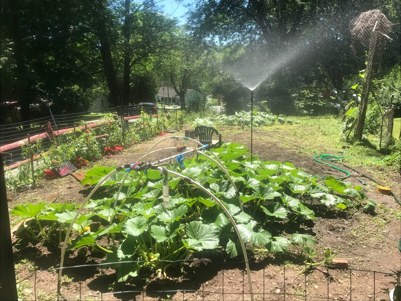 The heat wave was welcome but not sure how it affected the pollinations. The already late sets may not take. Will have to wait s d see and continue to try and pollinate. Val and I worked on the patch at my moms house and got the sprinkler set up. We are growing a squash on one end and possibly let a field pumpkin go on the other side. We have a tomato alley going along the fence and a long gourd on the other side.