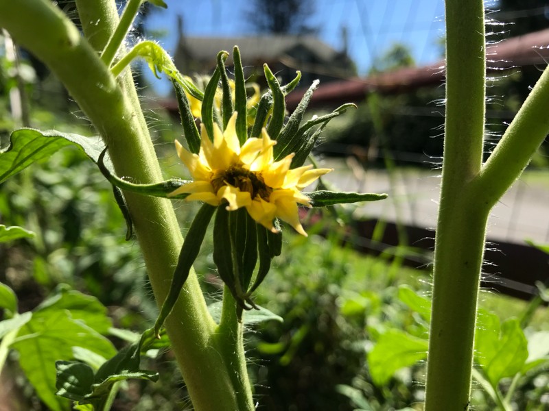 I�m not quite sure about this tomato pruning thing. It looks like there are some blossoms forming on a few of them. No super mega blooms but a few look like at least doubles.