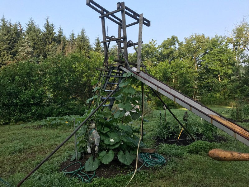 I snuck up to dyberry patch Andy�s place to see how my Team 24 member is doing. He has the super long gourd slide ready to roll again.