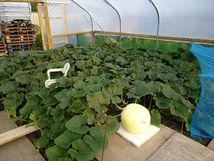 A quick view inside. The chair is where the backup is. Vines have been terminated when they hit the sides, but until then I'll keep the plant growing until all the space is used up.