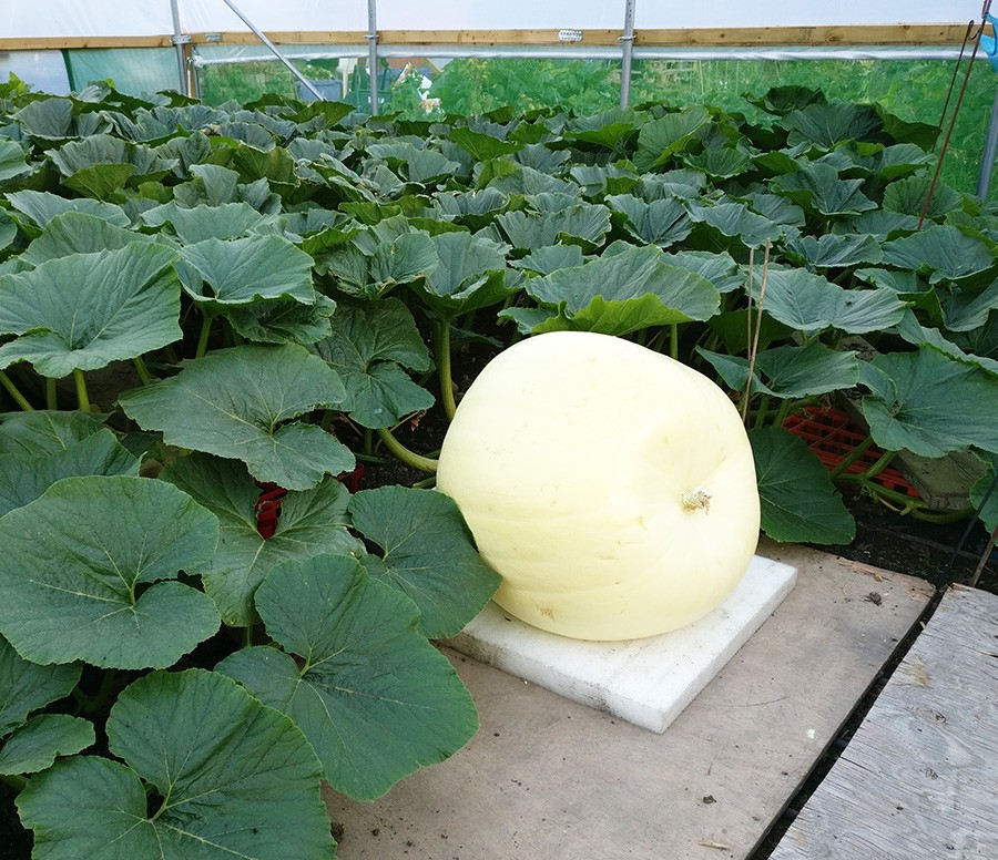 Here's a better view from today, with the sun cover & fan not showing. I'm pretty sure all the backups have stopped growing now; it looks like the plant is putting all it's energy into this single fruit. So unless another female flower appears in a promising position, which may or may not happen, it's all or nothing.