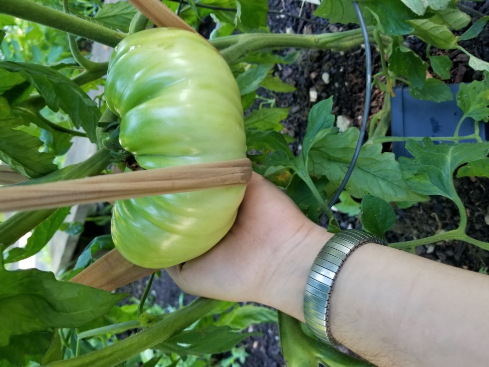 Grow beefcake grow!!! First tomato I've ever grown should be taping over 2 lbs tomorrow.... still got a ways to go before she starts turning red. Daily growth is still going good. I have a feeling this solid tomato will go heavier than expected.