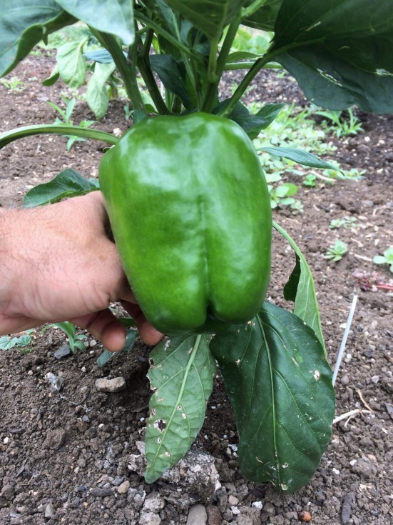 Trying the large peppers. This is a Colossal Hybrid, the same variety as the world record 695g (1 lb 8.51 oz) Nieuwenoff. I have a few of those going also. Had pulled off some earlier takes and now they are in the flowering stage.