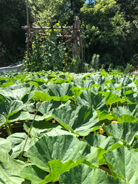Back patch almost full...long gourd starting to take over the black coat runner beans on the trellis...lots of hummingbirds on them beans....