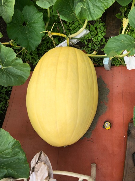 Day 25...she�s long...and she�s growing..I put the stake in the ground in front of her about 1.5� away from the vine...had to move her everyday the last four days...felt heavier today...please please please please please.....1600 or bust this year