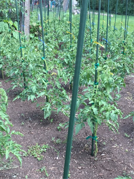 Spent all day working on the tomatoes pruning and weeding. Also marked each plant with a color ribbon. The color chosen was made by my evaluation of blossoms and sets. The best are the red ones..triple or better pointed in the right direction. The yellow ribbon..still too early to decide. Blues are a strong double or weak triple. Blues will be ignored the rest of the year..seed harvest. Twenty plants were pulled that didnt make the cut. Right now I have about 20 reds. That number may go up or down. Much more manageable than 120 plants. Started the first compost brew of the year. 40 gallons for the 20 plants. Time to try to grow some big ones.