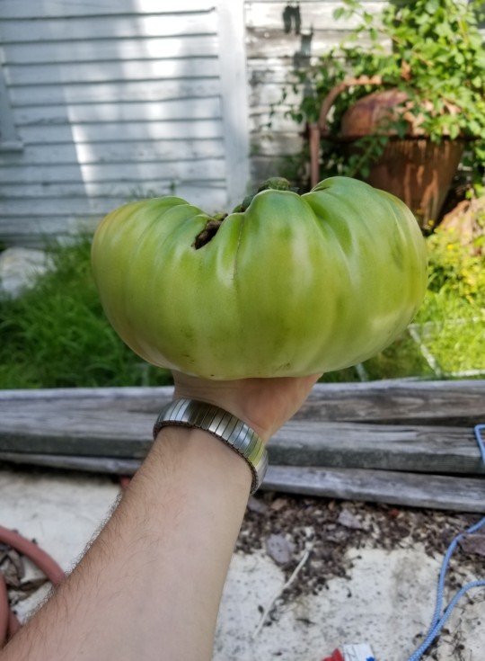 Picked the first 2.06 zacheart, beefcake. Flashing red and wanted to give the baby tomato on top of the same plant a fighting chance.