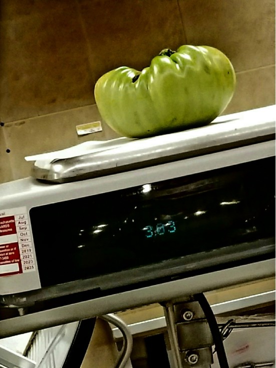 When I asked the lady at Big Y to weigh this tomato she gave me quite the attitude lol. Barely had time to snap a pic before she handed the tomato back to me.