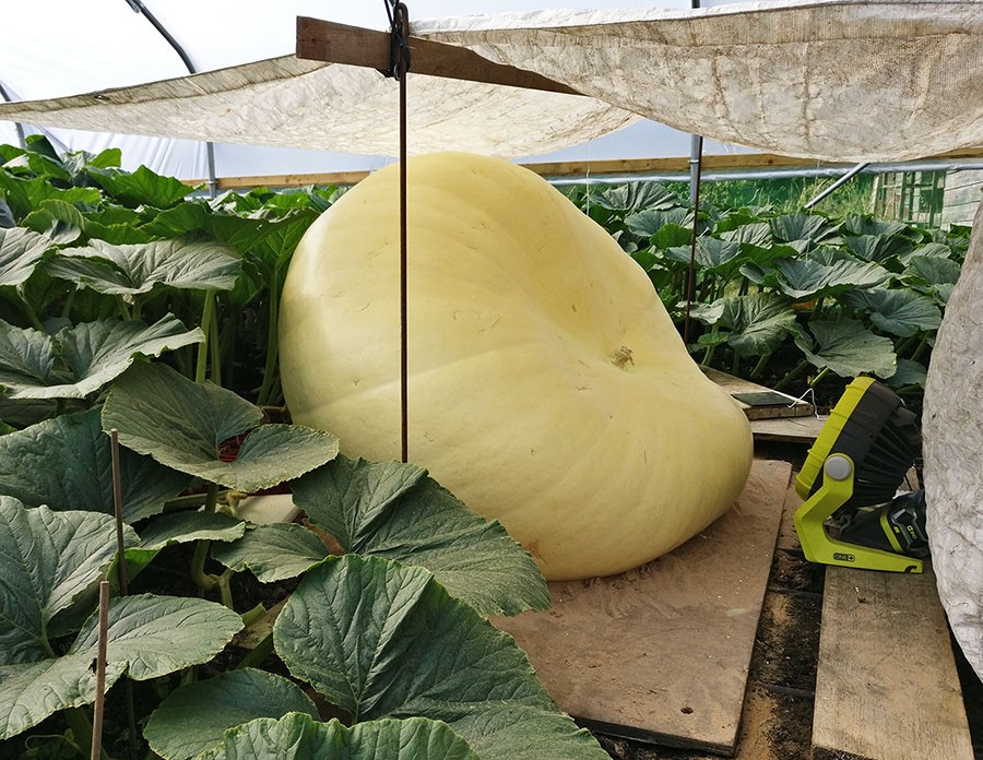 DAP 36 with 303 OTT and 561lb. The growth rate has slowed slightly these past few days with daily progress being 36, 35, 34 - and then yesterday it was 30lb - last week it was making mid-30s per day. The weather has been slightly cooler and less sunny, perhaps that's the reason, or perhaps it's normal at this stage, not sure. Just like its 1949 parent the skin is very pale, I'm not too bothered but it does mark easily.