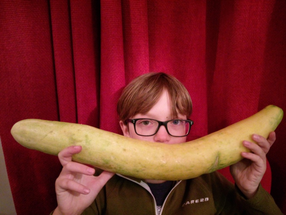 As an aside, Oliver found this 21" cucumber in the greenhouse this afternoon. I can't imagine how big it would have grown if we'd actually been trying - maybe a new project for next year?