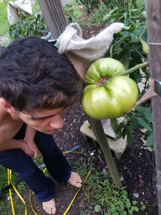Lol my brother wanted to compare his head to this 5.31 Ellis I have going, which I have named "Pacman". Pacman could be something special.. in 4 days his 3 way measurements tell me he gained right around 1 lb...roughly 3 lbs now...should have at least 20 more days with these cooler nights.