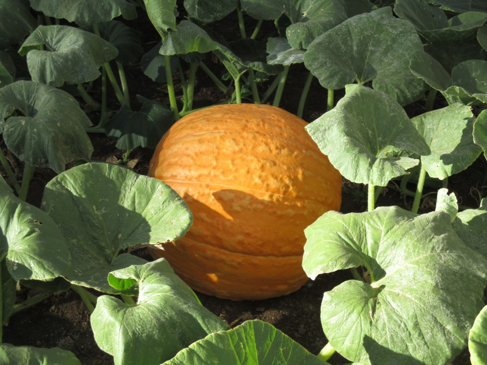 Andrew's pumpkin, now around 55 lbs, more red and kind of wharty skin:)