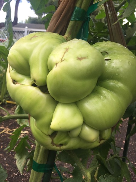 I sent this picture to Eddy yesterday. At 33 DAP the megamutt is measuring 26x23x21 for an estimated weight of right about 6 pounds. 12 days to stay green for a long shot to make it to the fall weighoffs. Night temps for the next 10 days will be consistently in the 50�s. That should slow down ripening.