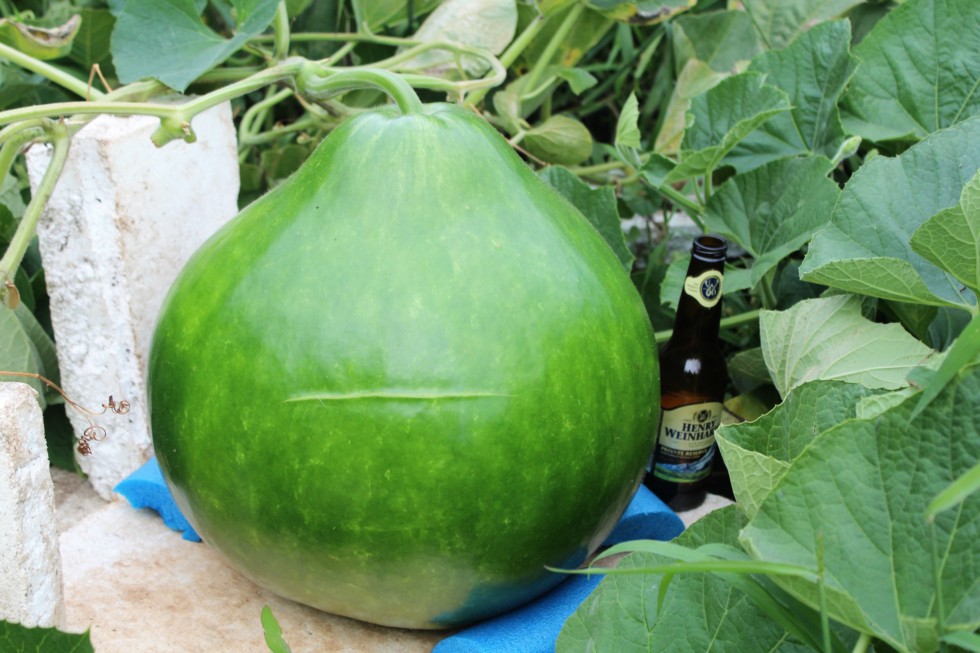 Bushel Gourd on the 210.5 English that I am growing blossom down. I have two on this plant.