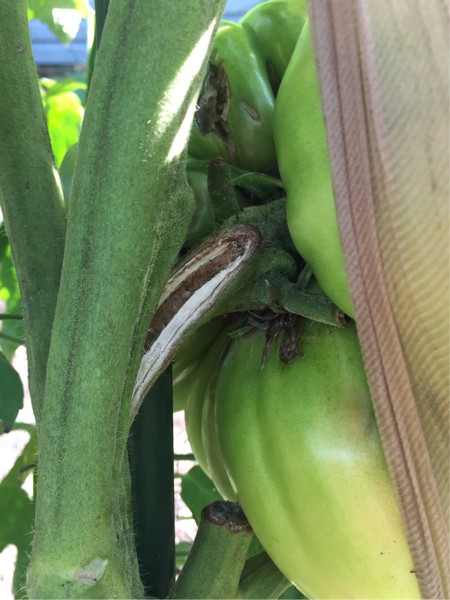 This is why the megamuttD started flashing early. In the rain last week the tomato started to separate from the main vine even though it was double hammocked. Next year will use a different style. It will be weighed in a little over two hours. Meeting Wile Coyote at the grow store for an early weigh off. Hope it goes heavy.