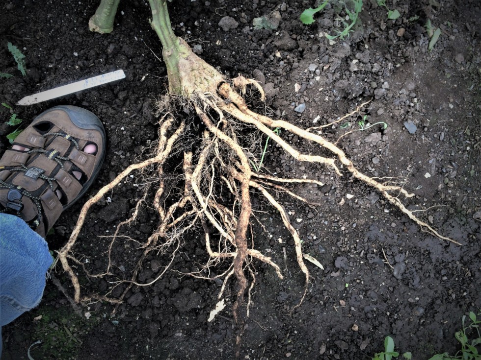 Cleaning up the garden. Here are the roots from the 8.22 Marley. Hands down the largest roots I have ever pulled as compared to the Big Zacs. I think it is a Domingo thing because the 5.95's were the same way. I have the root system but not the consistency of heat to produce a Domingo any more than a couple of pounds. Therefore putting up a 20' x 48' hoop house next season!