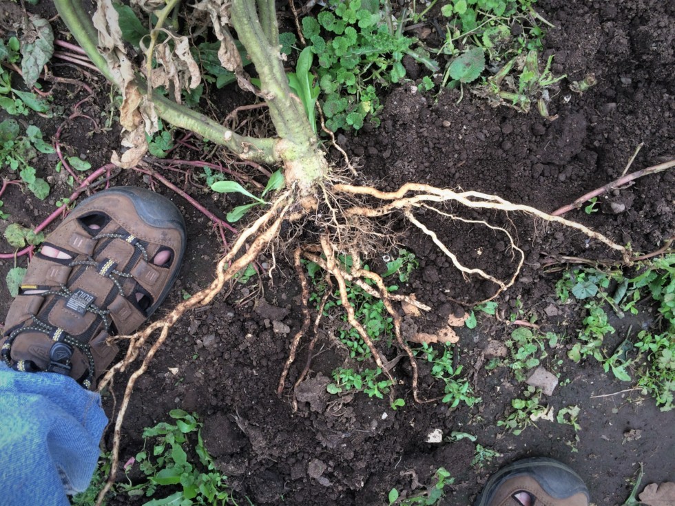 And these are the roots from the 6.06 Spaziani Big Zac that grew my largest of 5.56 this year. Must smaller roots than the 8.22 Marley, but grew the largest tomato.