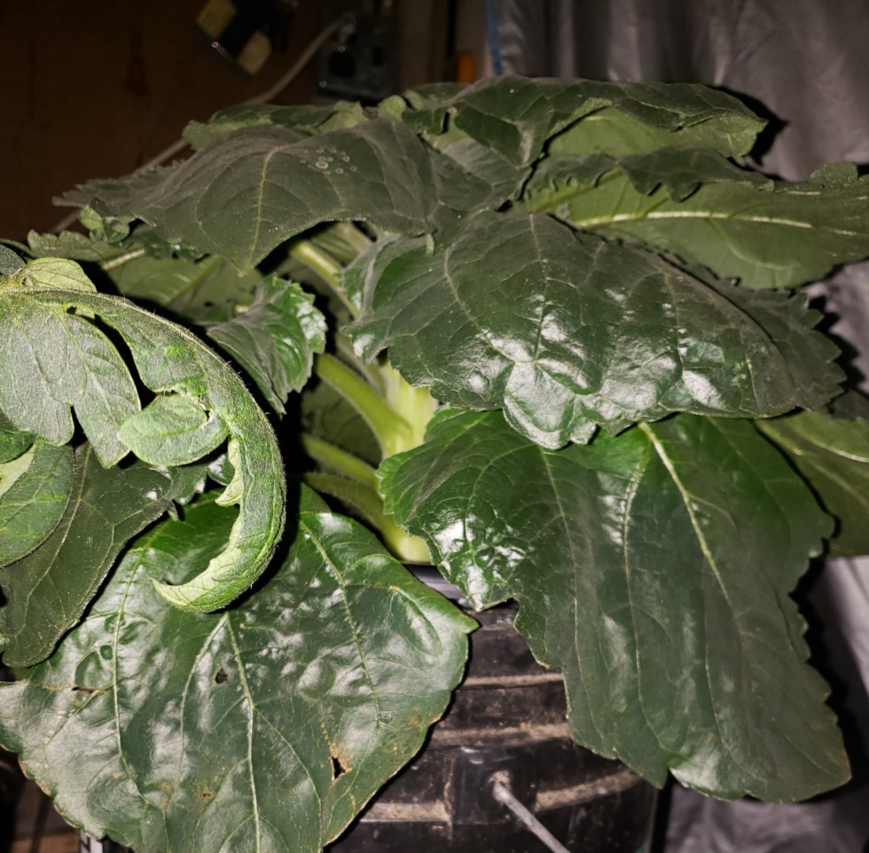 5 week old giant head sunflower. Perhaps hydroponics is a good method to grow these things? This is the stockiest sunflower I've ever personally seen