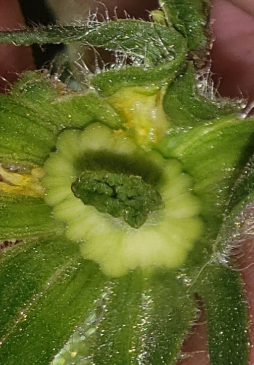 Also... my first pollinated blossom looks to have taken, pulled petals off today (making it day 1 in my eyes)