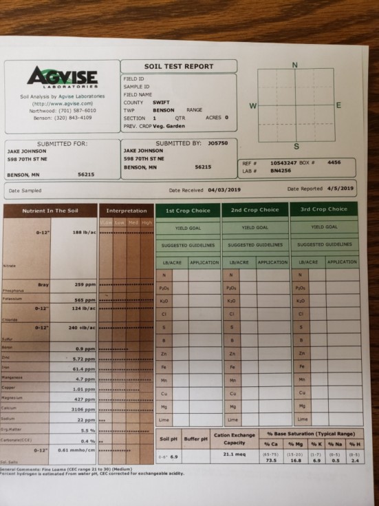 Looks like my home grown compost from our cows and horses is plenty HOT! Some of the numbers on the soil test are quite high. Hopefully the plants don't start on fire when it comes time to transplant.