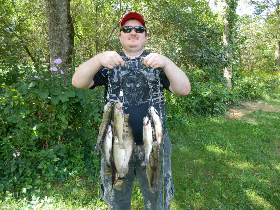 I took Jacob and my wife trout fishing in Clayton County, Iowa. We caught our 15 fish limit: 2 browns, 6 brookies and 7 rainbows. Some for the grill, some fillets to fry, and the heads and guts for next year's garden.