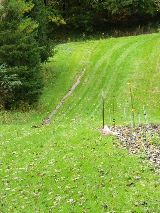 Thought I was going to have some trouble getting back up the hill after sliding down. But a front brake had locked up. Rust from sitting in the rain since we got home from Bloomfield on Saturday. But no trouble at all coming back up in 4WD.