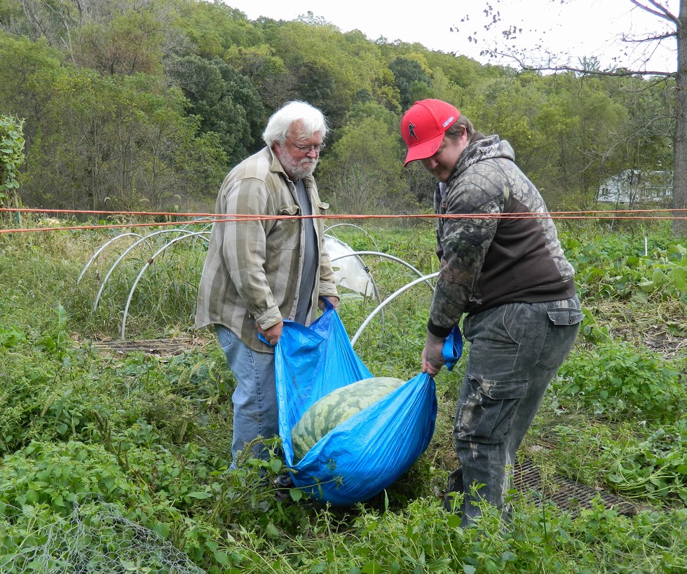Jacob's watermelon on the way from the weed patch to the Equinox.