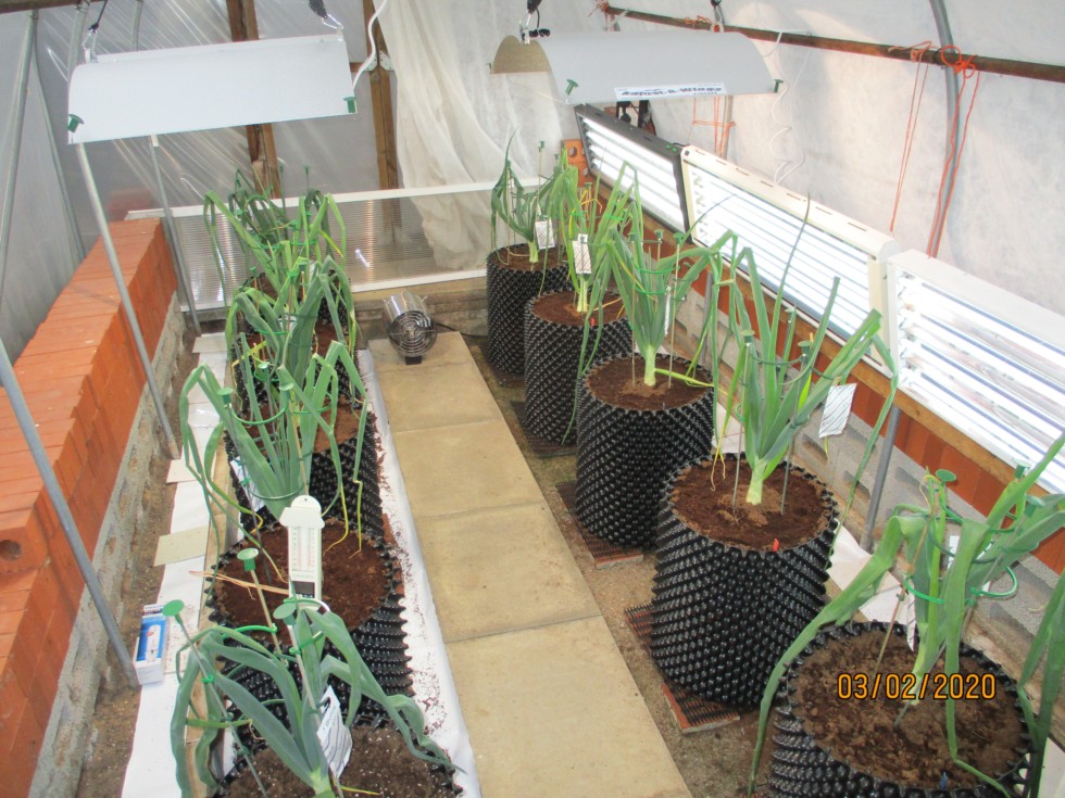 Planted first Onions into LOT2 with heat and lights. These are in 65litre Airpots, 6 filled with Coir, 2 with Terra and 2 with John Inness compost.