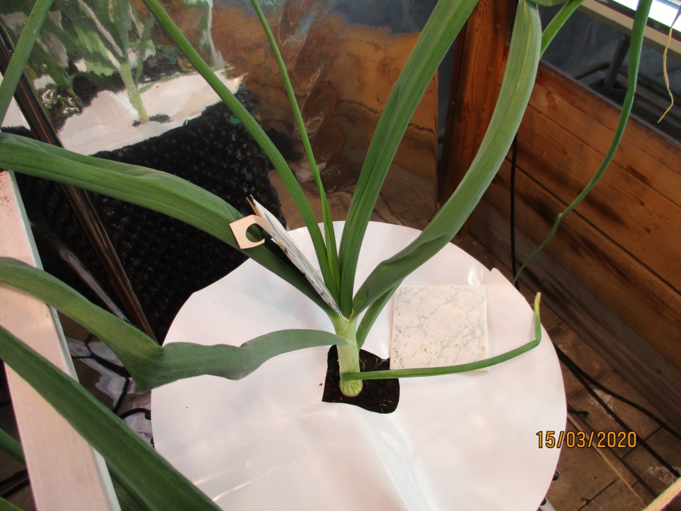 Replaced with a later sown Onion (mid Dec.) far smaller but this time air pot filled with Terra so hope for better results and will see if it continues to grow on later into the summer than the early ones.