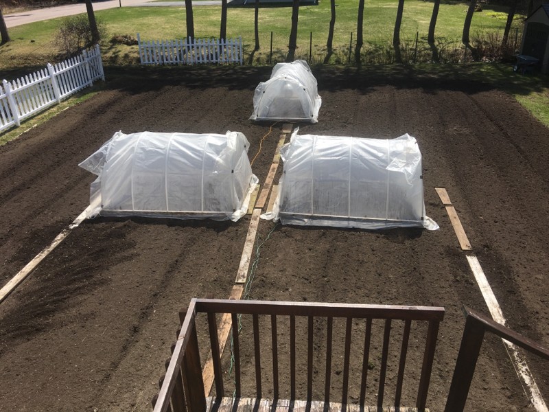 Here is the newest patch with different stump locations this year. The two hoops close to each other will have 20 feet for the main and 30 feet for secondaries equaling 600 square feet each. The farthest hoop will have 20 feet for main and 40 for secondaries equaling 800 square feet.