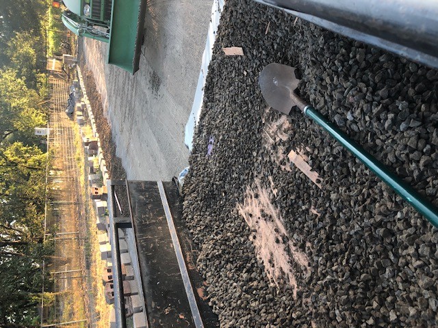 To make it so the entire patch would drain I put down about 4 inches of gravel on top of the chicken wire. There is a slight slope to the area, so it should drain well.
