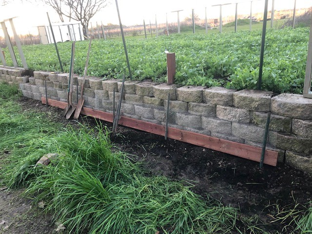 Here is what the wall looked like after reinforcing the walls with gopher wire. It took me about two weeks of working 2-3 hours a day to do this to the entire patch.