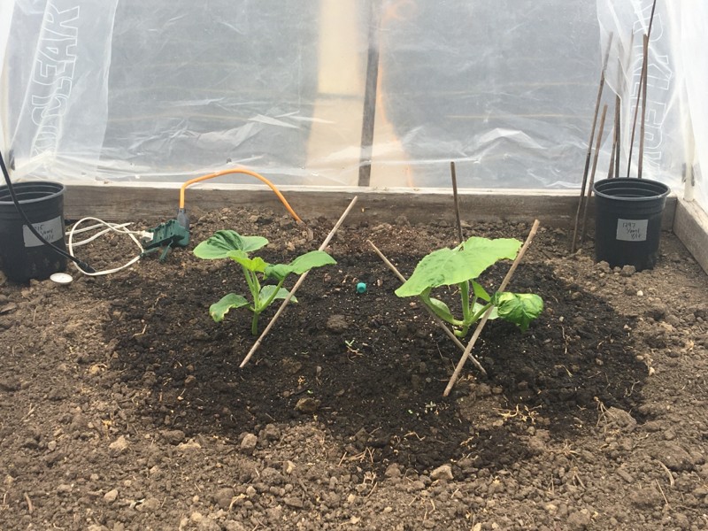Our plants have survived their first week in the hoops and although not the worst first week weather it was certainly top 10. The hopeful keeper is the 1297.5 Young which is on the right in this hoop.