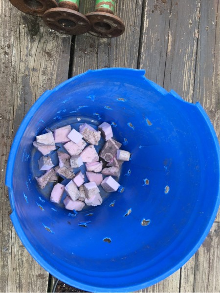Next broke up some old foam board and added a layer in the bottom to help soil drain.