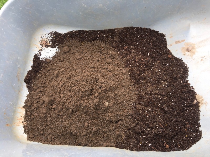 Added 2.5 gallons of miracle grow potting soil and 2.5 gallons of patch dirt. Mixed the two together and planted adding 2 WOW fertilizer packets.