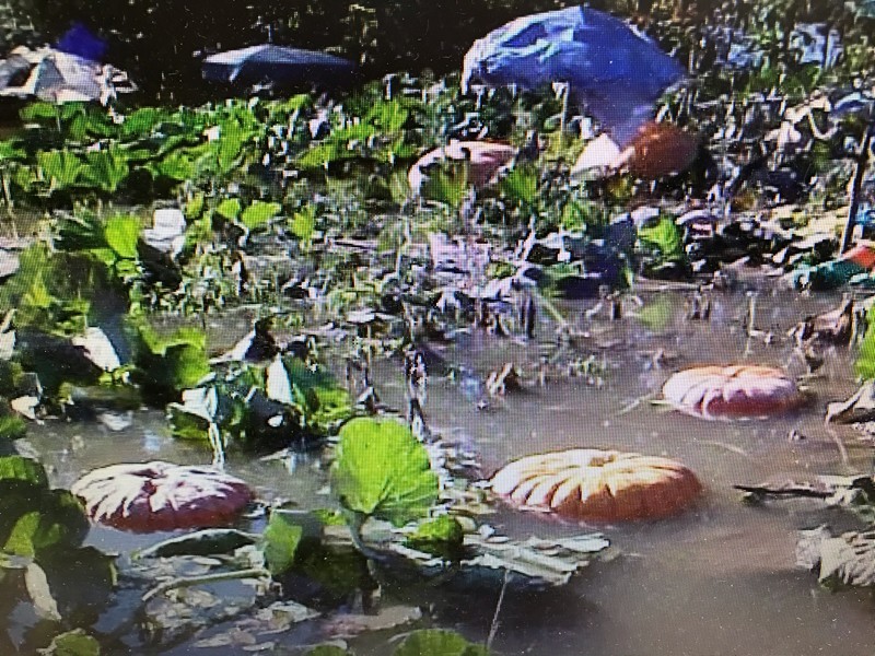 He had some seeds from the year before from a Cinderella pumpkin we crossed with a big boy. The pumpkin offspring were beautiful. And we found out they floated , the hard way.