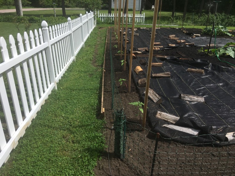 Tall sunflowers are starting to stretch. Another few feet and we will start attaching them to the poles.
