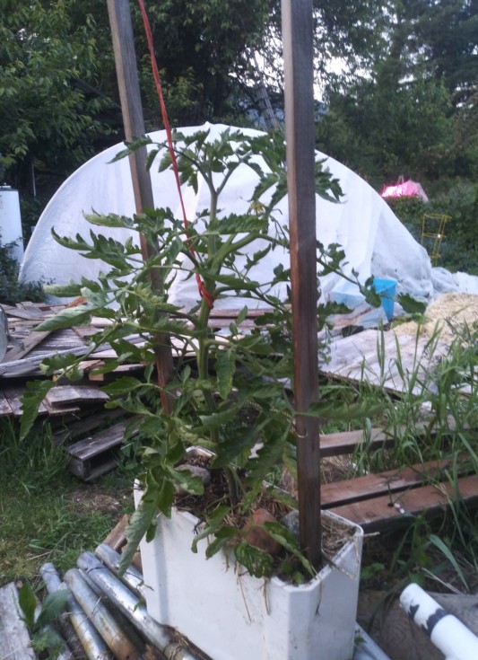 Pollinated a few days ago. Just a double. I want to see what pops out on the 2nd and 3rd trusses. The white porcelain stays very cool, even in the hottest sun. So that should keep the roots stress low if summer ever arrives.