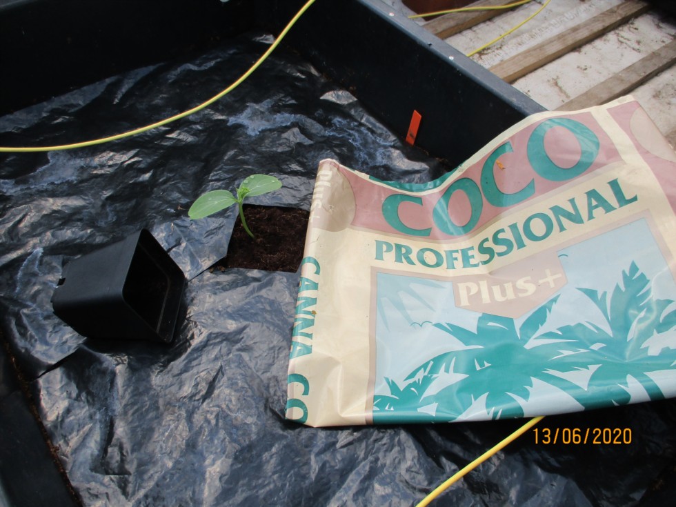 Weather has turned warm and humid, planted out six Cucumbers into Coir filled trays. Watered/fed the coir well before planting.